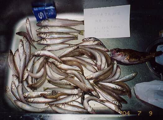 続いて7月3日も同じ場所に行きましたが、結果はキス22匹、ベラ6匹です。キスはピンギスばかりで、持って